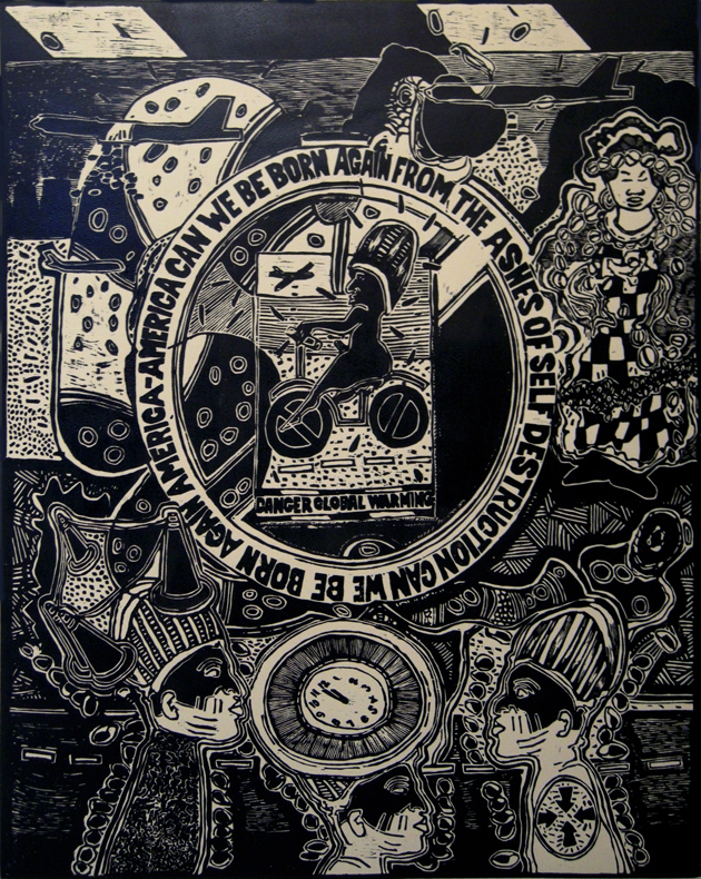 America Can We be Born Again?, 2008. Woodcut Print on paper. Collection of Guanlan Print Base, Guanlan, China.