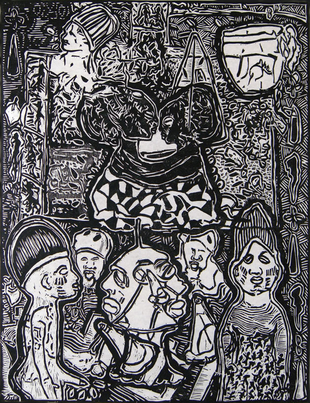 Encuentro, 2008. Woodcut Print on paper. Collection of Museo Civico "A la Ponzone", Cremona, Italy.