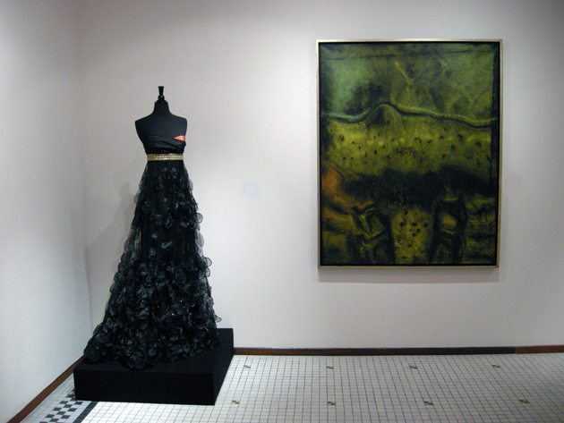 Essence - Installation, 2010. Encaustic painting on linen. Exhibition entitled Arteando – 2010. Presented at the Museo de Arecibo, Arecibo, Puerto Rico. The dress is an interpretation of the painting by Marcos Carrazana.