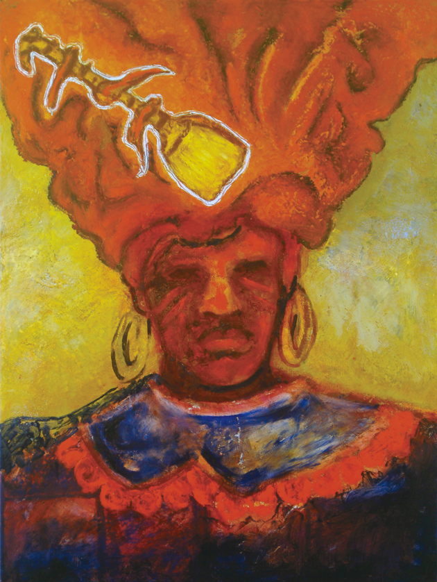 Oyá, 2004. Encaustic painting on linen. Collection of Dr. Elena Alvarez.