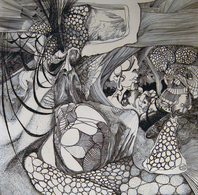 The Anarchist, 1983. Line engraving print on paper. Collection of Muñoz-Bermudez Foundation