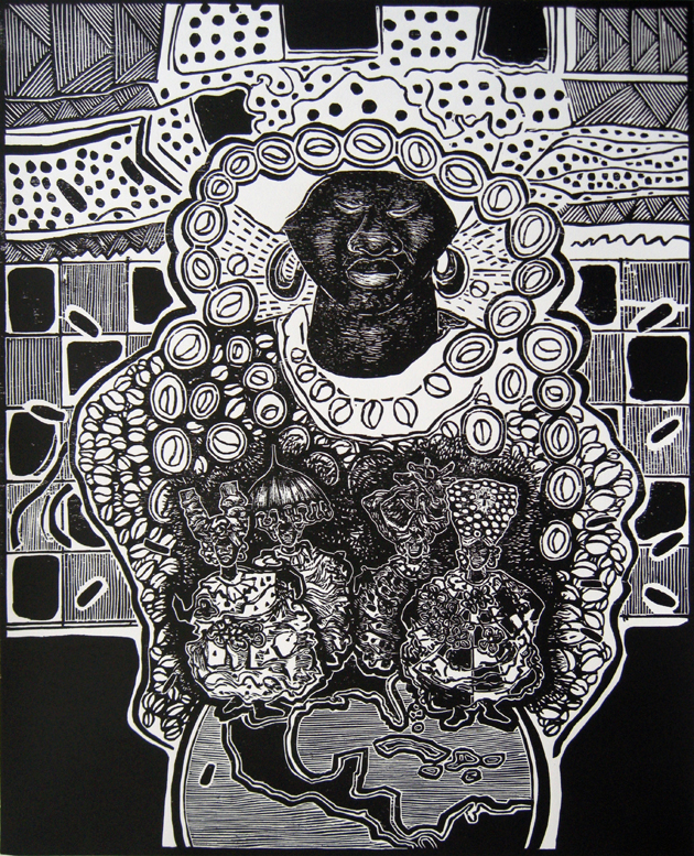 The Dance of Changó, 2009. Woodcut Print on paper. Collection of Guanlan Print Base, Guanlan, China