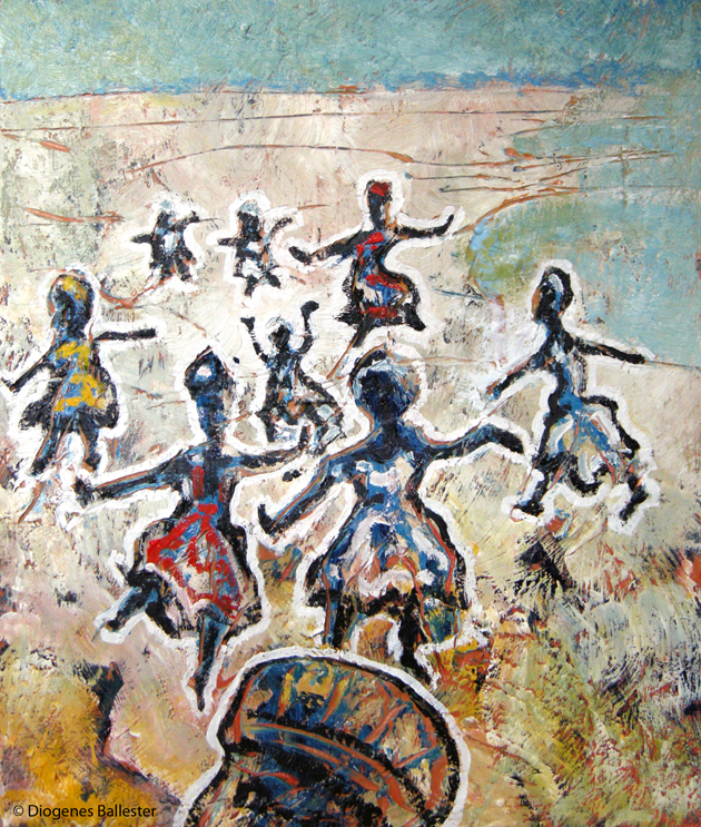 The Dancers, 2006. Encaustic painting on linen. Collection of mb, New York, New York.